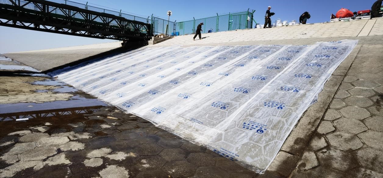 混凝土節(jié)水保濕養(yǎng)護膜,是以新型可控高分子吸水材料為核心,以塑料薄膜為載體,通過設備加工復合而成的卷材產(chǎn)品。其中高分子材料可吸收自重200倍的水分子, 吸水膨脹后變成透明的晶狀體,把液態(tài)水變成固態(tài)水,每平方米養(yǎng)護膜可蓄水0.5KG,成為一個固態(tài)的微型水庫,然后通過毛細管的作用向混凝土養(yǎng)護面滲透, 同時不斷吸收混凝土在水化過程中產(chǎn)生的蒸發(fā)水,因此在一個養(yǎng)護期內(nèi)總能保持混凝土表面濕潤。
